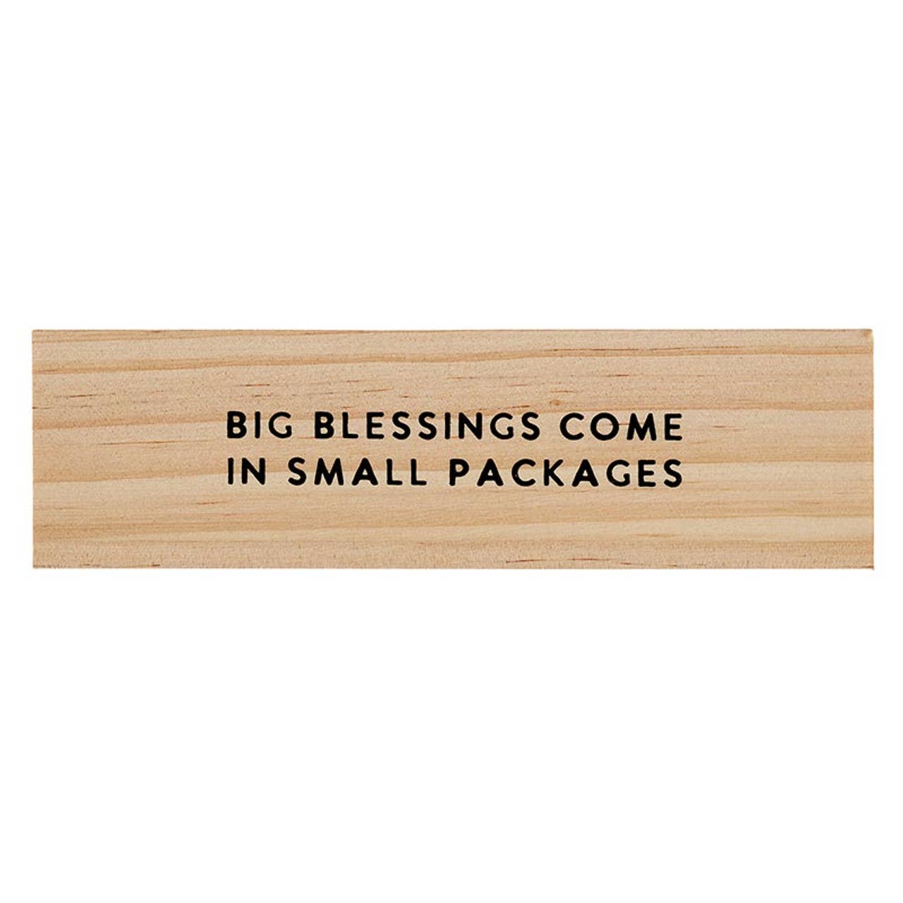 Big Blessings come in small packages! This wood box is a is a charming way to share your wonderful news with loved ones or to keep as a memento to treasure. Simply place your test inside, and get ready to spread the joy of your anticipated little blessing! Includes pregnancy test shaped card and area to add baby's due date.