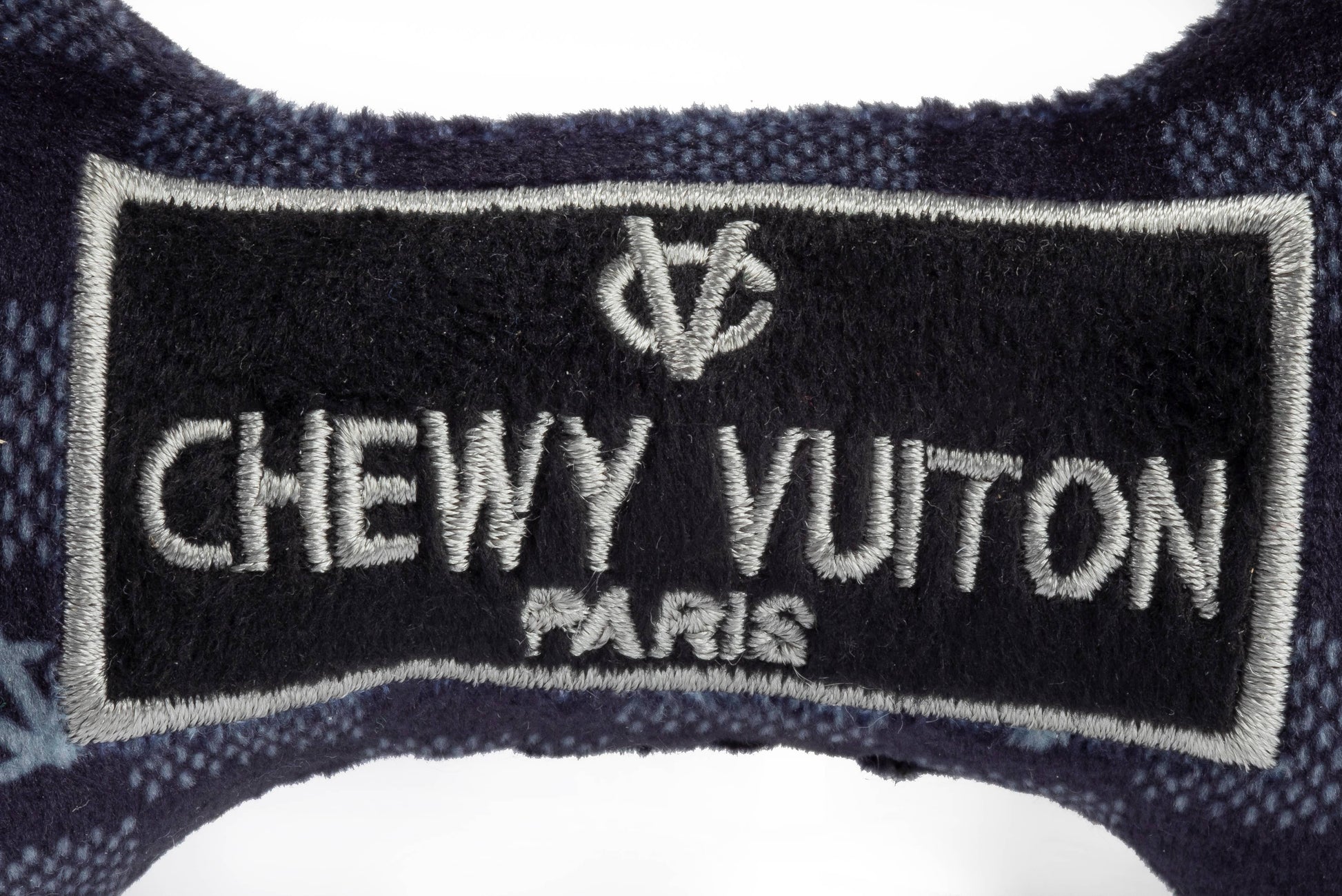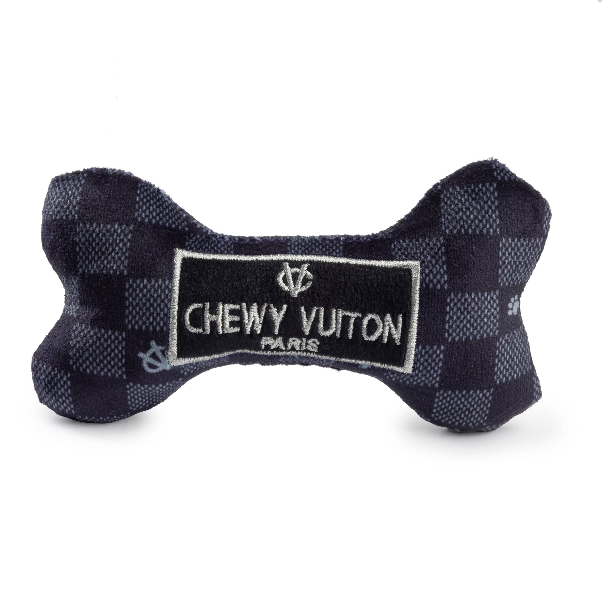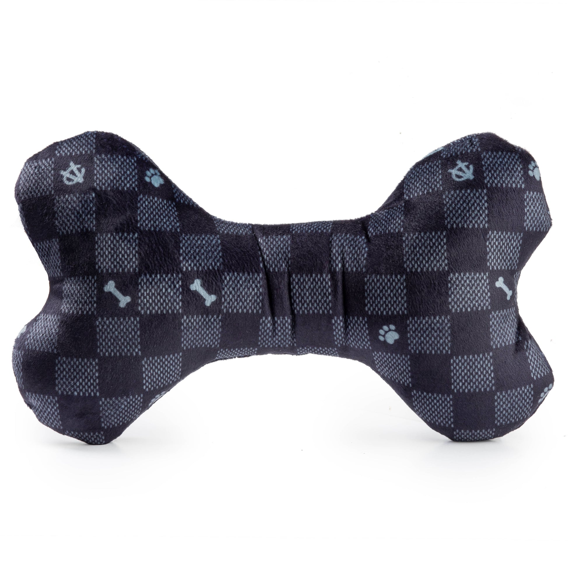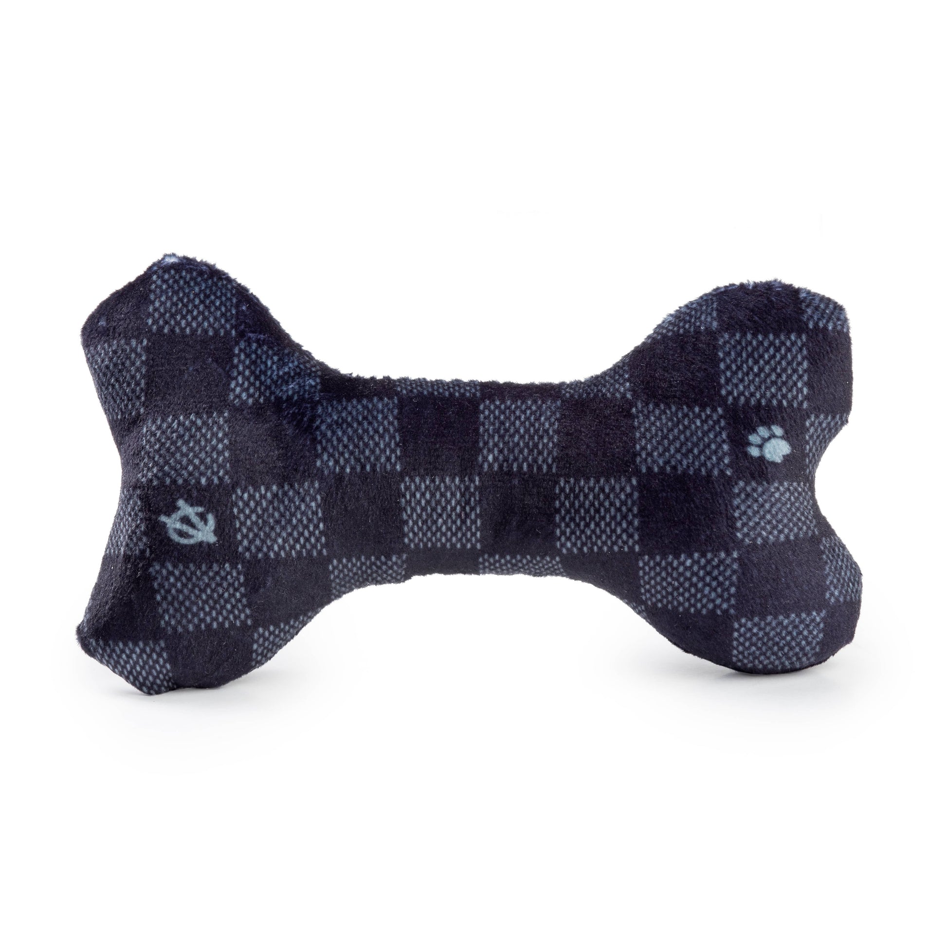 Black Checker Chewy Vuiton Bone Squeaker Dog Toy