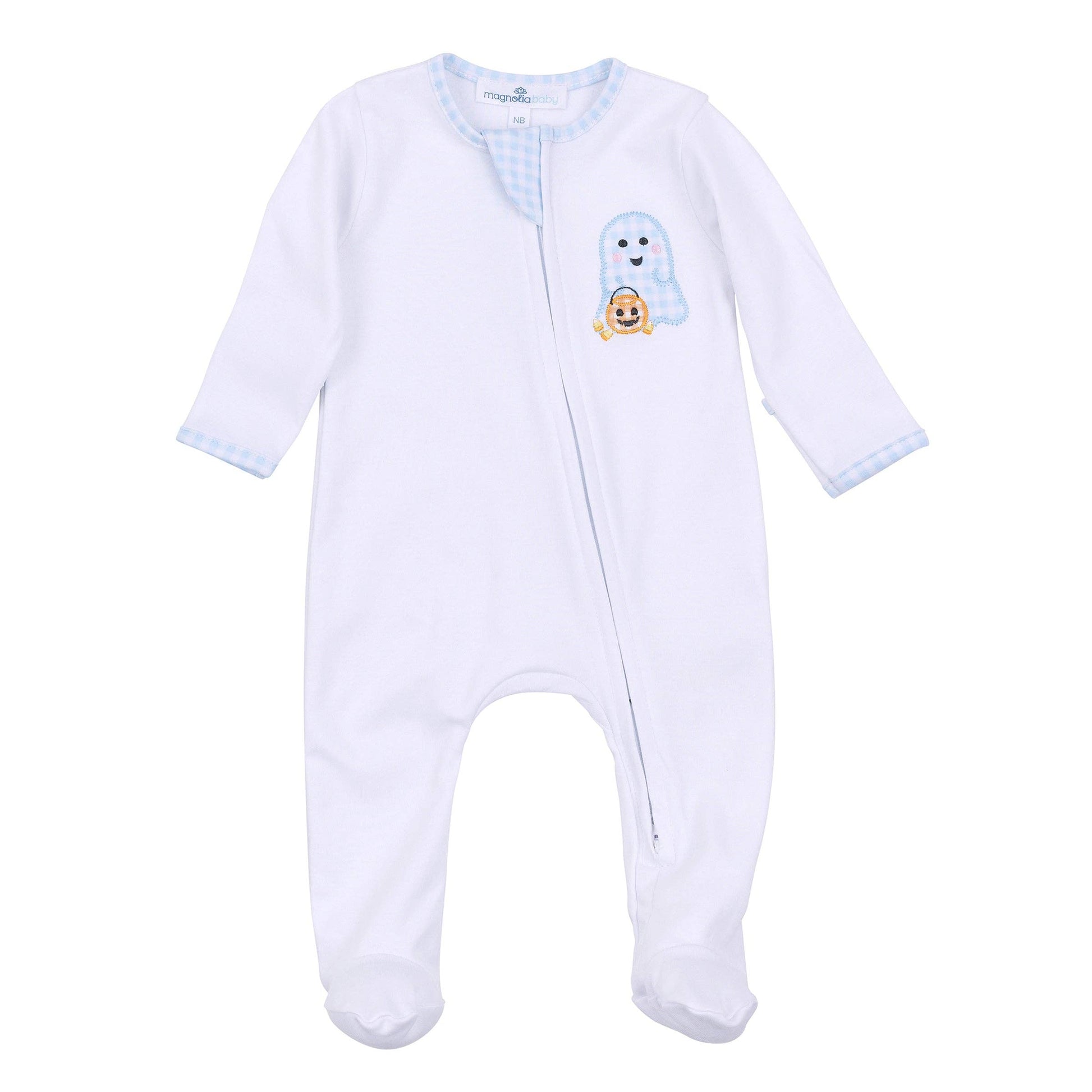 Magnolia Baby Boo Crew! Applique Zip Footie - Light Blue