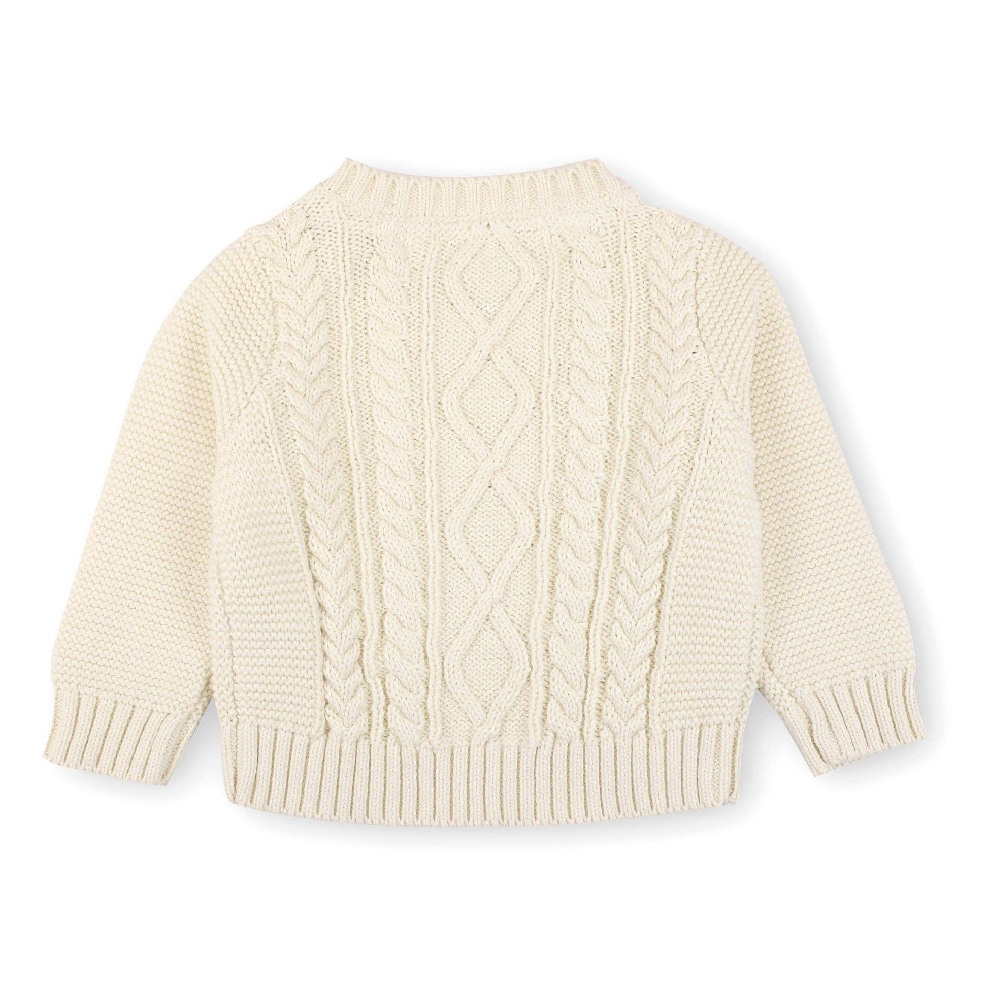 Soft, lofty organic cotton will keep your little one snuggly and photo ready. Our sophisticated two piece set features an adorable cable knit pullover sweater and matching leggings. The sweater top has faux horn buttons at the shoulder for easy dressing of baby. Perfect for a gift (although if you keep it for yourself, we'll understand).