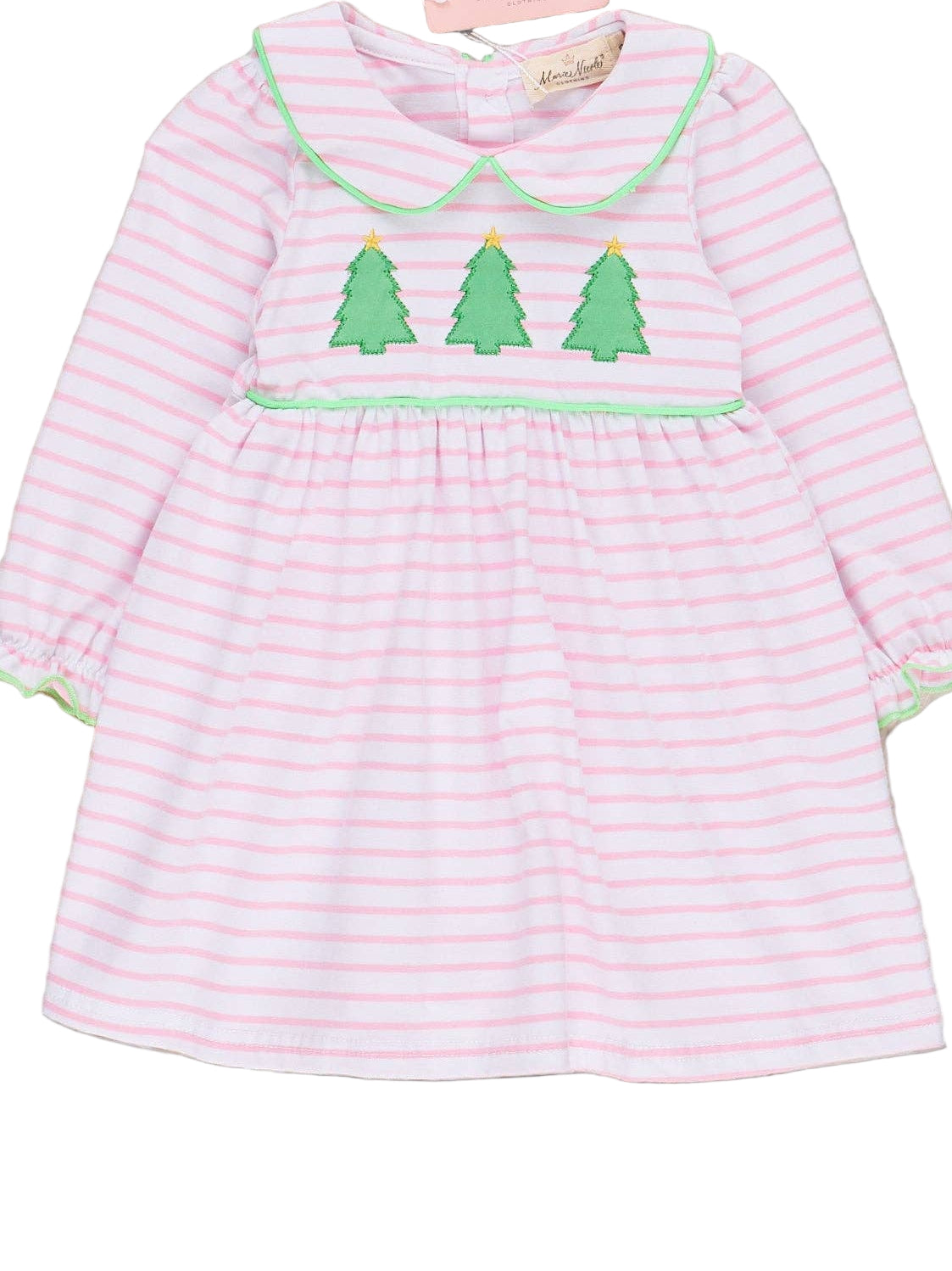 Lime & Pink Embroidered Christmas Trees Dress