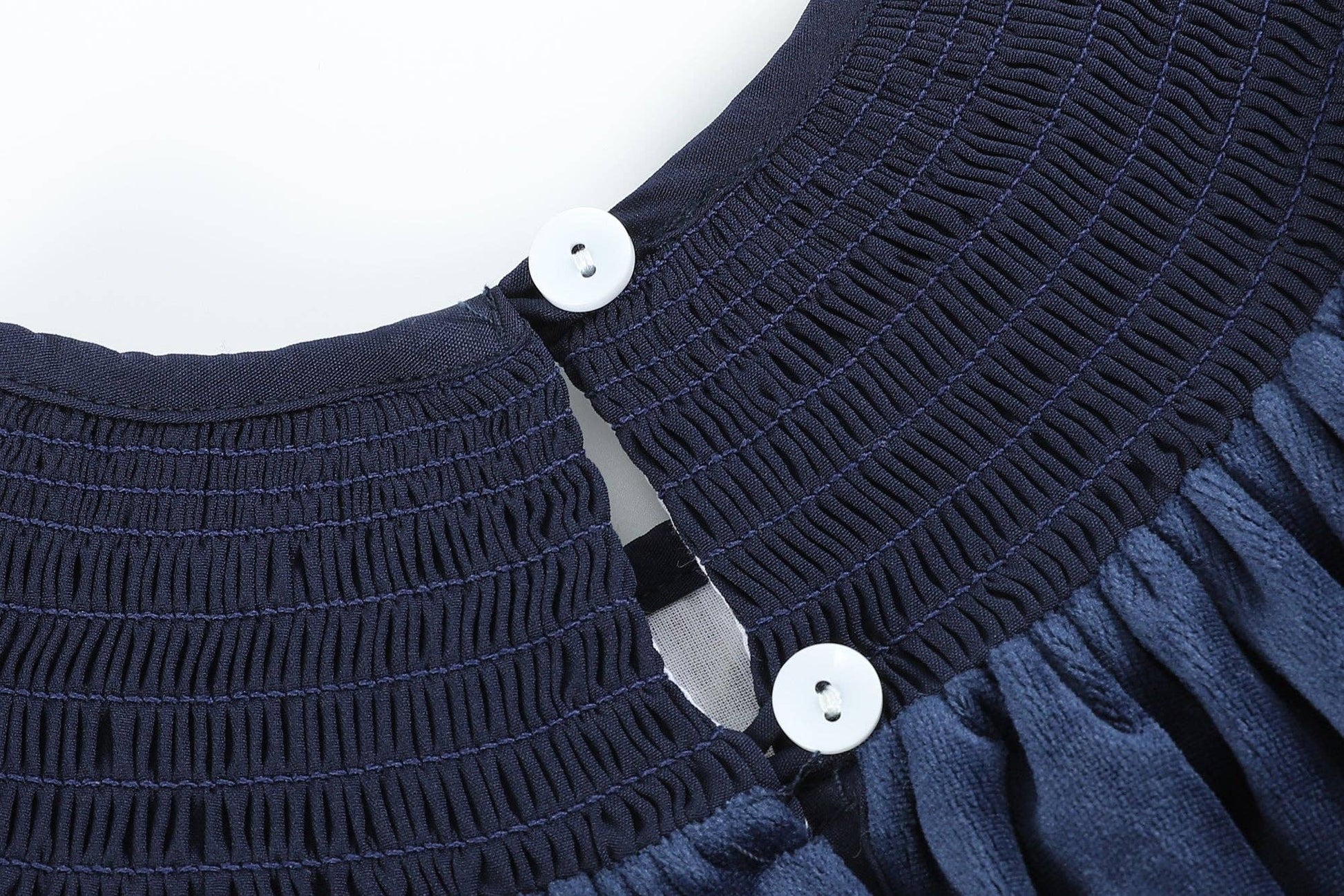 Navy Blue Velvet Gold Nativity Smocked Bishop Dress