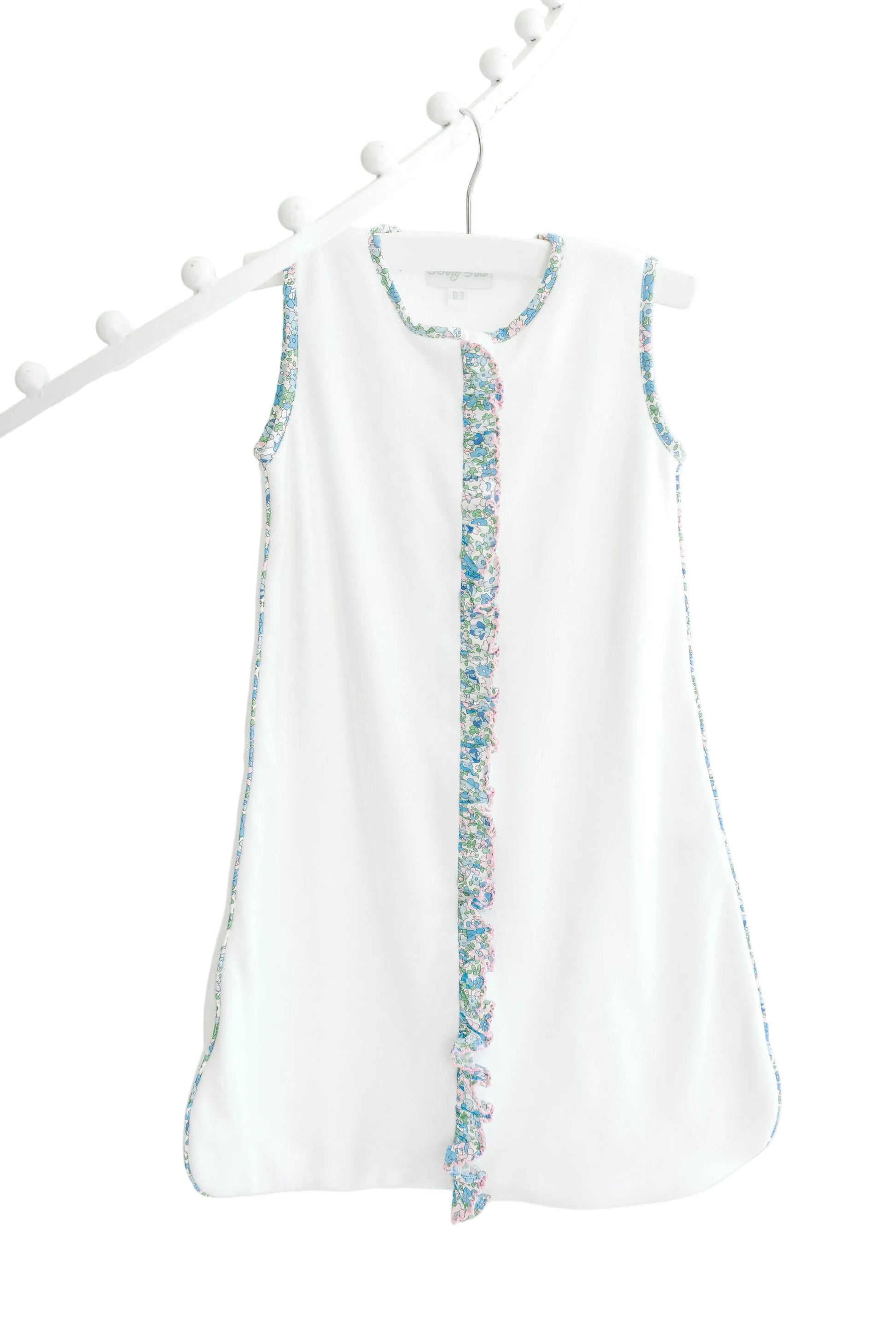 Terry Tots Sleep Sack - White w/ Blue Floral Trim