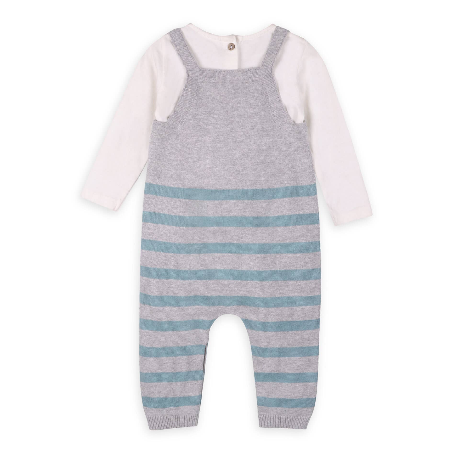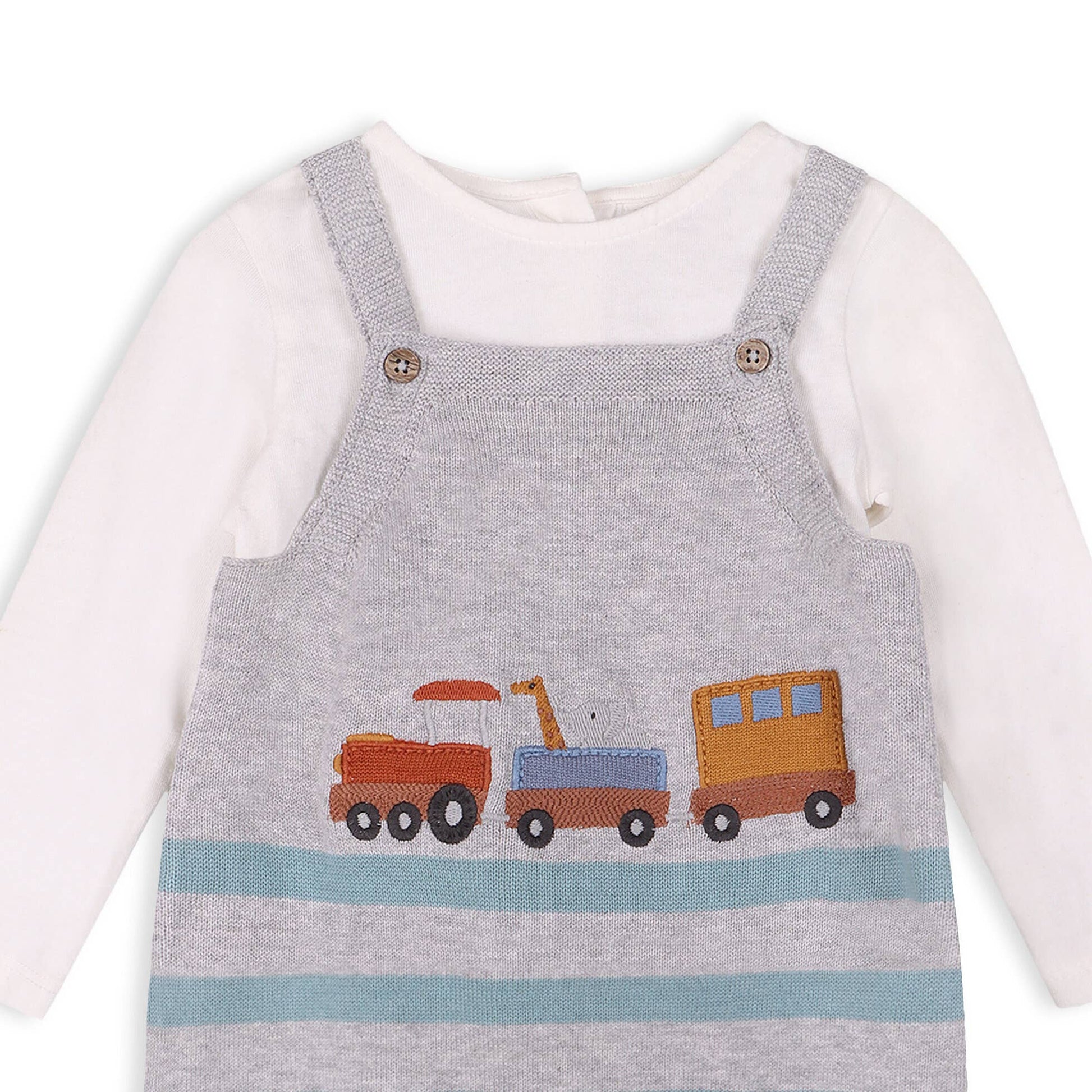 Train Applique & Stripe Baby Overall & Bodysuit Set